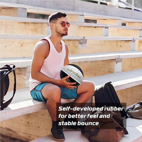 Longsail Full Size Basketball Rubber- Leather,Indoor-Outdoor-Pool,with Pump(Deflated)