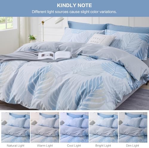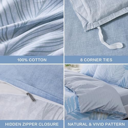 SAPHREAS Ocean Blue Duvet Cover Set King Size 3pcs Monstera Leaf Tropical Leaves Cotton Bedding Comforter Cover Set 1 Duvet Cover 2 Pillow Shams with Zipper