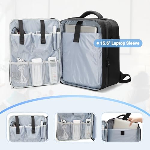 LUXJA Projector Backpack with 15.6 Inch Laptop Sleeve, Projector Bag with 2 Large Compartments (Compatible with Most Major Projectors), Black
