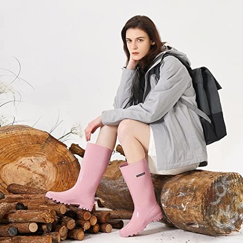 planone Tall Rain Boots Women Fashion Waterproof Boots for Women Light Outdoor Garden Shoes Muck Boots for Ladies Non Slip Work Shoes Rubber Boots with Premium Comfort Insole
