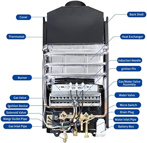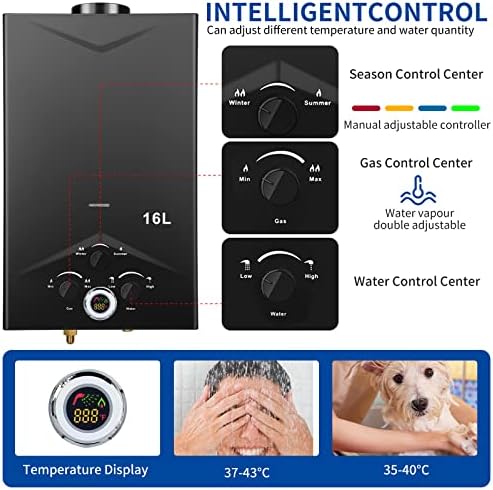 Tankless Water Heater 4.21GPM 16L Outdoor Portable GasHot Water Heater Instant Propane Water Heater with Digital Display Multi-Protection for Camping Trips Boat Cabins