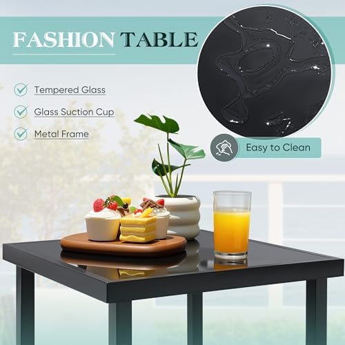 Greesum 3 Pieces Rocking Wicker Bistro Set, Patio Outdoor Furniture Conversation Sets with Porch Chairs and Glass Coffee Table, Blue