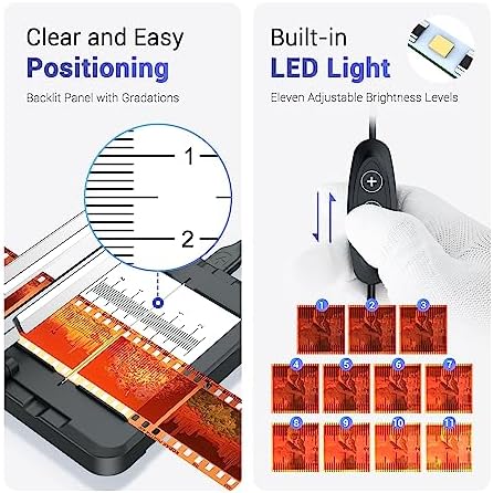 JJC Negative Slide Film Cutter for 35mm 120 Format Strip, 35mm Film Trimmer with 11-Level Brightness Adjustable LED Backlight Panel Support USB-C Charging and Graduated Mark for Clean Cutting