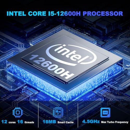 AWOW Mini PC Intel Core i5 12600H(12C\/16T, up to 4.5GHz), HI12 Mini Computers 16GB DDR4 512GB PCIe3.0 SSD, Mini Desktop Computers Triple Display 4K, RJ45 2.5G LAN, Type C, WiFi 6, BT5.2