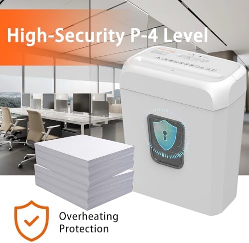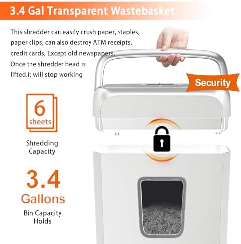 Bonsaii low-noise operation shredder, 6 cross cut credit card shredders, home office document handle, mail staples, 3.4 gallon garbage basket, easy to carry handle, white (C237-) B)