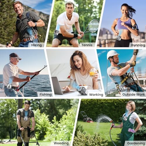 Portable Fan Wearable Personal Fan with 5 Speed Max 55 Working Hours Low Noise Portable Neck Fans Cooling Waist Fans for Camping Traveling LED Power Display 10000mAh Rechargeable (White and Gray)