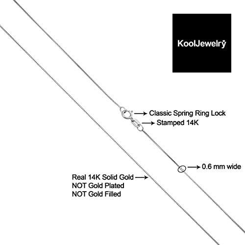 Kooljewerry 14k White Gold Box Chain Women's Pendant Necklace (0.6mm, 0.7mm, 0.8mm or 1mm/Length from 13 to 30 inches), White Gold, No Gems
