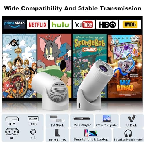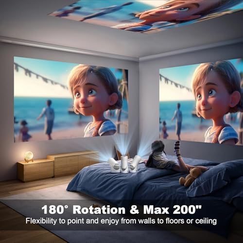 Mini Projector with WIFI 6 and Bluetooth, 4K 1080P Support Portable Projector 180° Rotatable 200'' Screen Movie Projector Auto Keystone Compatible for Laptop, PC, Smartphone