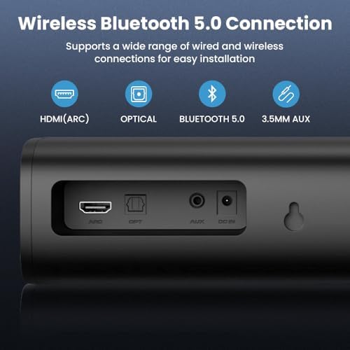 Sound Bar for Smart TV, Bluetooth Soundbar for TV, 50 Watts Mini Sound Bar with ARC\/Optical\/AUX, Surround Sound System for TV\/PC\/Gaming\/Projectors