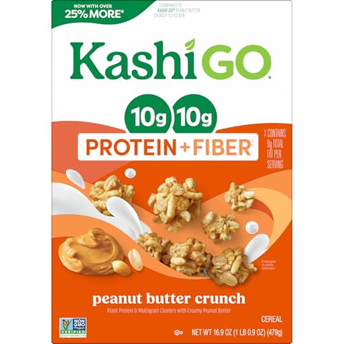 Kashi GO Protein Cereal, 10g Protein, 10g Fiber, Peanut Butter Crunch, 16.9oz Box (1 Box)