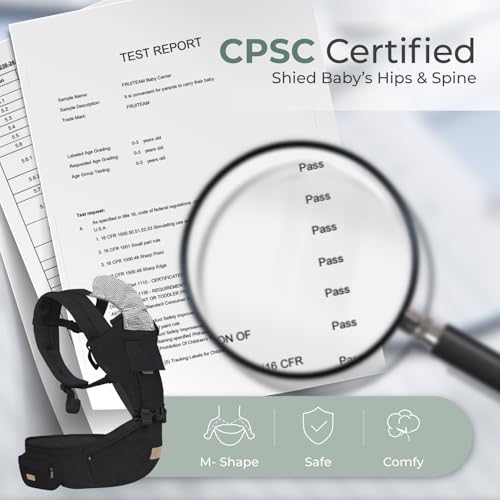 FRUITEAM 6-in-1 Baby Carrier with Hip Seat for Breastfeeding, All Seasons, All Position Adjustable Baby Chest Carrier with Lumbar Support, Adapt to Newborn, Infant & Toddler (Cool Black)