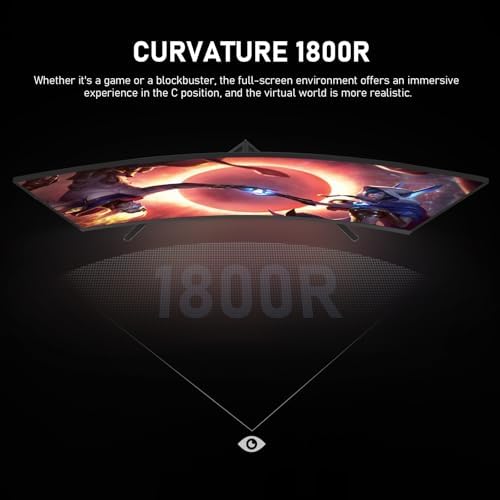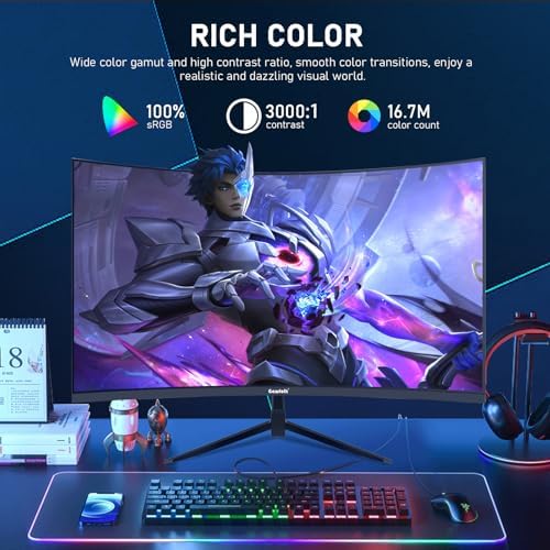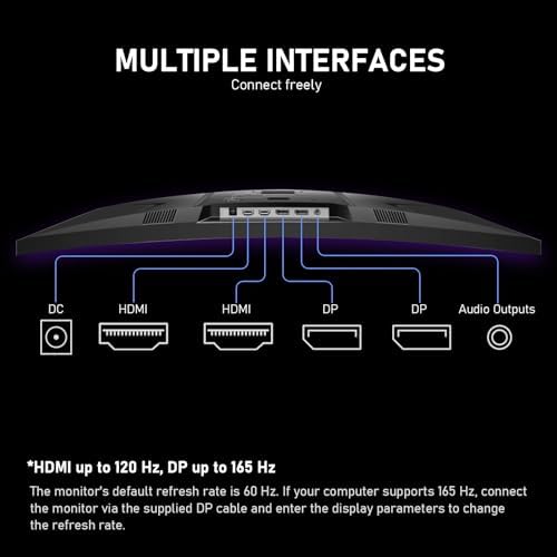 Gawfolk 32 inch 2K QHD(2560×1440P) 165Hz Curved Gaming Monitor,PC Screen, 1ms,FreeSync, 98% sRGB,178° Wide Viewing Angle,DisplayPort、HDMI, Wall Mount Compatible 100 * 100MM Wall - Black