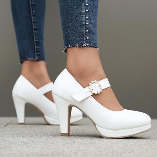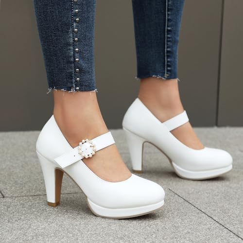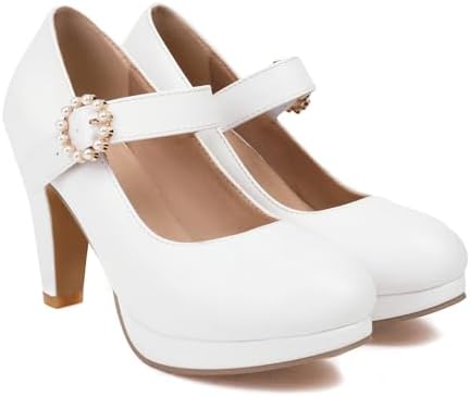 ForeMode Bow Mary Jane Shoes High Heels Closed Round Toe Pumps Leather Summer Sweet Shoe