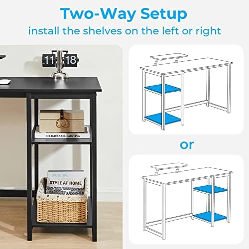 GreenForest Computer Desk 39 Inch with Monitor Stand, Office Desk with Adjustable Storage Shelves, Small Gaming Desk for Home Work Writing Study, Black
