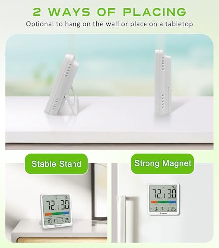 Geevon Digital Indoor Thermometer Hygrometer, Wireless Temperature Humidity Meter with Comfort Index, 1*AAA Battery, Calendar, Small Room Temperature Monitor for Home, Greenhouse, Bedroom, White