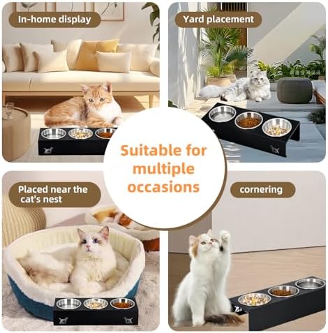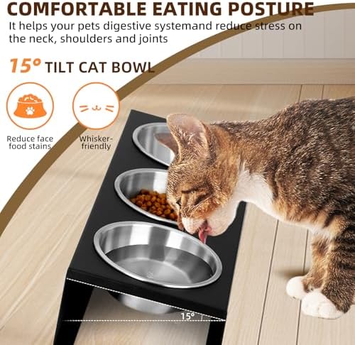 Elevated Cat Food Bowl,15°Tilted Stand Anti Vomiting Raised Cat Dishes for Food and Water,3 Stainless Steel Bowls,Non-Slip No Spill,Cats and Puppy