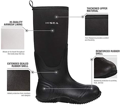 HISEA Women's Rain Boots, Knee High Rubber Boots Waterproof Insulated Neoprene Mud Boots, Anti-Slip Outdoor Work Boots for Hunting Gardening Farming Yard Working, Size 6-11