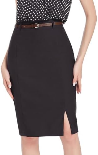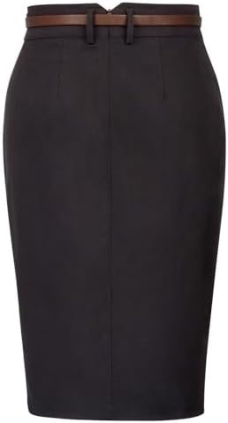 Kate Kasin Women's Bodycon Pencil Skirt with Belt Solid Color Hip-Wrapped