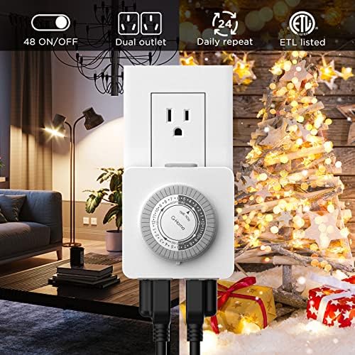 G-Homa 24-Hour Mechanical Timer Outlet with 2 Grounded Outlets - For Lamps, Holiday Lights