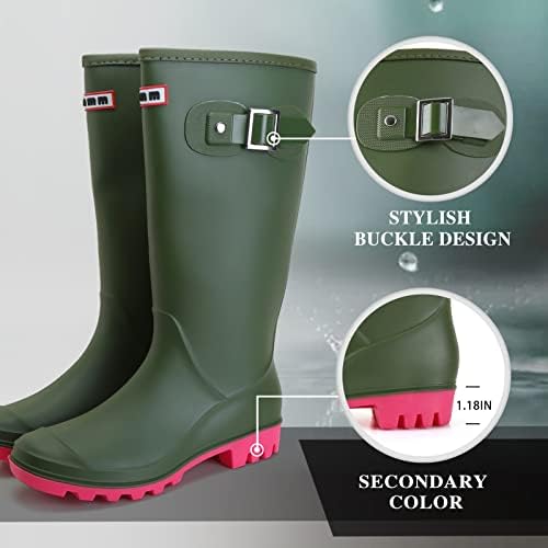 RIUETAR Rain Boots for Women, Waterproof Anti-Slip Knee High Rubber boots, Fashion Comfy Tall Water Boots Lightweightr Garden Booties for Outdoor