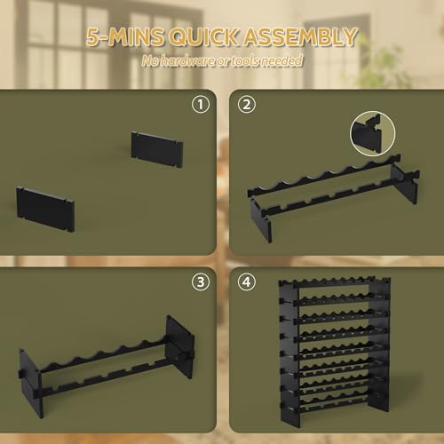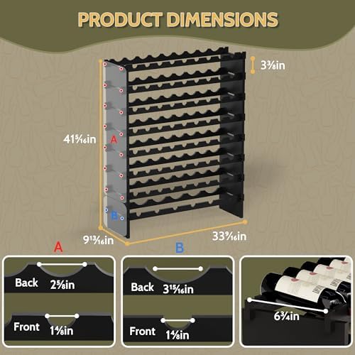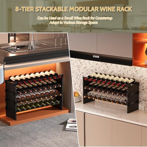 Wine Rack Freestanding Floor, Bamboo 8-Tier 69 Wine Bottle Holder Racks Countertop Cabinet Display, Wooden Stackable Modular Wine Storage Organizer Shelves for Kitchen Bar Cellar Dining Room Black