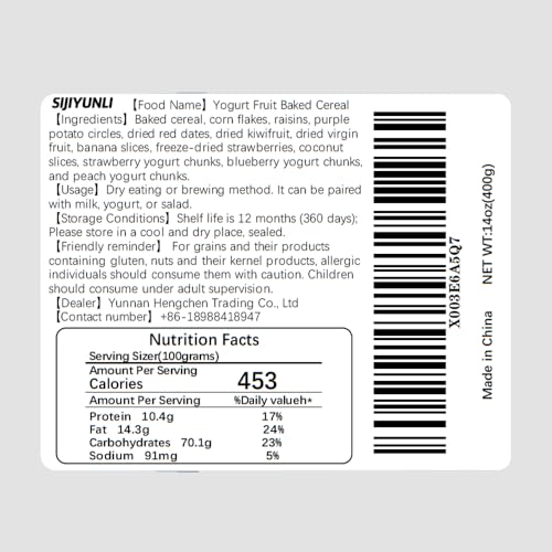 SIJIYUNLI-Yogurt Fruit Baked Cereal 400g\/14.1oz Nutritional breakfast, low sugar, Congee,Dietary Fiber