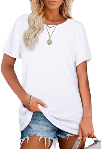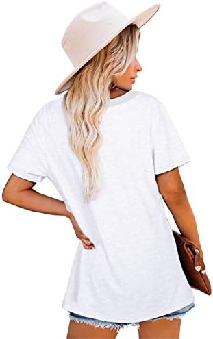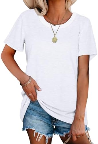 Jescakoo Womens Tops Summer Short Sleeve Ribbed Trim Crewneck T Shirts Fashion Basic Tee