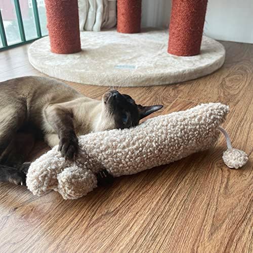 TTcat Catnip Silvervine Matatabi Pillow for Cats & Kittens,Cat Kicker Toy,Large Size Cat Pillow Soothing Plush Cat Toy(Beige).