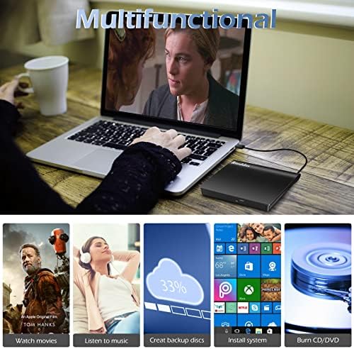 Rioddas External CD\/DVD Drive for Laptop, USB 3.0 CD DVD Player Portable +\/-RW Burner CD ROM Reader Writer Disk Duplicator Compatible with Laptop Desktop PC Windows Apple Mac Pro MacBook Linux