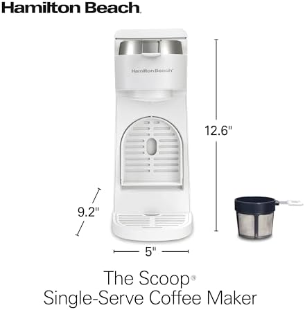 Hamilton Beach 47621 The Scoop Single Serve Coffee Maker & Fast Grounds Brewer for 8-14oz. Cups, Brews in Minutes, Next Gen, White