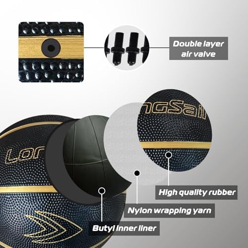 Advanced air tight seal, 48-hour leak-resistant assurance: Longsail's distinctive hermetic technology assures a leakless experience for 48 hours, provided the ball is pumped to the standard pressure prior to use. Revel in your game with peace of mind, backed by a one-year protection plan. Proprietary rubber blend superior bounce with a 1 year protection plan: Our custom rubber blend offers top notch bounce with a 1 year protection plan. It's CPC certified for health safety and provides a 5-8% better rebound for enhanced practice and play. Hard-wearing surface & graphics fade and scuff-resistant: The crashworthiness rubber surface and friction-resistant no wear or discoloration after 10 games, based on lab tests and user feedback. Just focus on the game, and our ball will reliably accompany you through the fun. Functional diversity: Size 3 Longsail basketball, featuring a circumference of 22.5 inches, perfect for indoor and outdoor play. Whether you're at the pool, lake, training, enjoying your backyard, party, playground, playhouse, or even the sandy shore, this basketball is your ticket to endless fun. It can be given to toddlers, boys, girls, sons and daughters—and makes for a fantastic addition to your toys. Transportation safety, providing pumps: For safety purposes and to protect the integrity of the ball, it has been deflated for transport. Get ready to enjoy the happy of inflating it yourself before you dive into your game time. (Note: The package includes 1 pump, 2 air needle, and 1 bag. Make sure to insert the needle all the way to allow the air to flow in properly.) Outstanding grip and superb waterproofing: The ball's surface has a dimpled texture and deep groove design that ensures excellent feel and control even when the ball gets wet. More stuff and better quality: The material between the butyl liner and the rubberized outer layer of our basketballs is made of the nylon yarn wrap wrap. The length of our nylon yarn wrap is twice as long as other balls, which protects our basketballs from deformation! Longsail basketballs will not crack after being submerged in water and exposed to sunlight for two consecutive weeks.