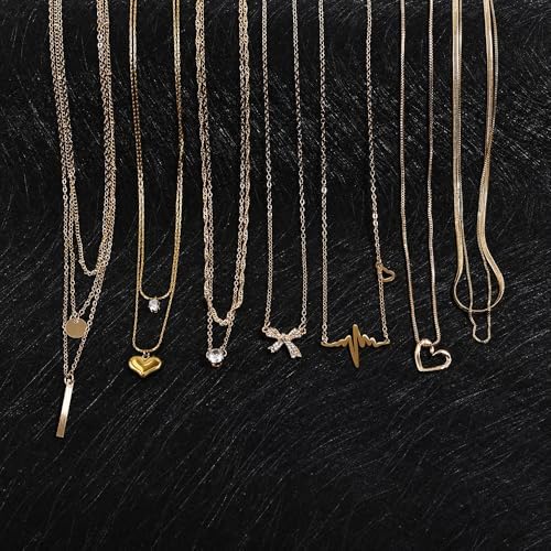 Myofeng 16Pcs Gold Necklaces Set for Women 14k Gold Plated Dainty Trendy Pendant Chain Choker Pack Multilayer Necklace Set for Women Adjustable Jewelry Gift