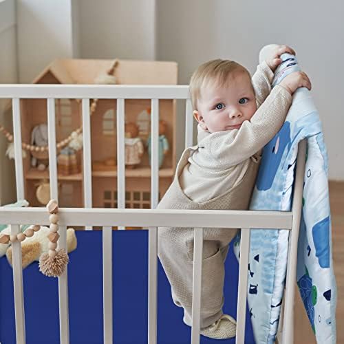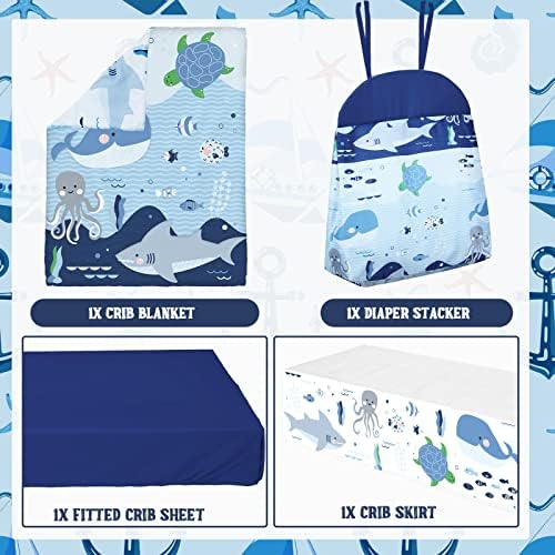 Rtteri 4 Pieces Baby Crib Bedding Set, Nursery Bedding Standard Size Soft Baby Bedding Set Including Crib Skirt, Blanket, Sheet and Diaper Stacker for Girls and Boys(Whale)
