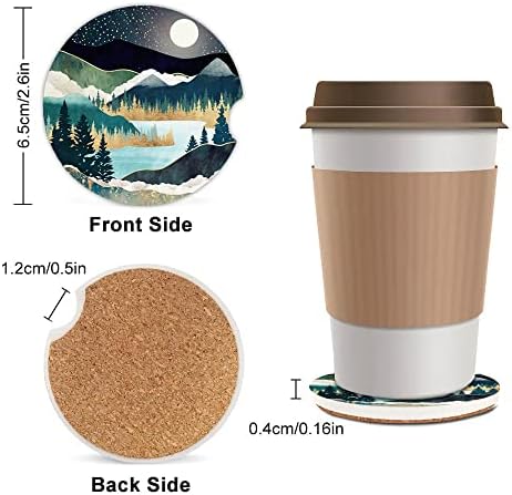 2 Pack Absorbent Car Coasters for Cup Holders,Ceramic Coasters with Cork Back and Finger Slot,Cool Cupholder Accessories to Keep Your Car Cup Holders Clean and Dry 2.56"(Mountains Nature Scenery)