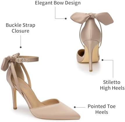 Trary Heels for Women Closed Pointed Toe Heels Women's Pumps Stiletto High Shoes with Bow Knot Comfortable Ankle Strap Office Party Wedding Dress Shoes 3.74" Heel