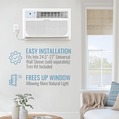Keystone 14,000 BTU Wall Mounted Air Conditioner with Supplemental Heat and Dehumidifier Function, 230V, Wall AC for Living Room and Large Rooms up to 700 Sq.Ft., Quiet, High Efficiency AC with Remote