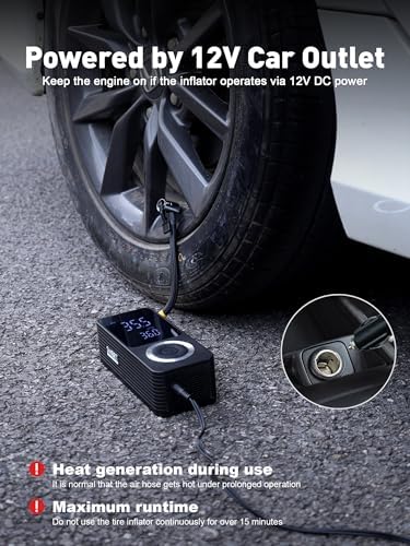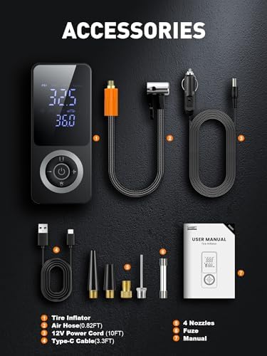 SMART JERRY - Tire Inflator Portable Air Compressor Cordless Mini Bike Tire Pump with Gauge Dual-Power Electric 12V Air Compressor for Auto, Motorcycles, Bikes, Balls Fast Inflation Max 150 PSI
