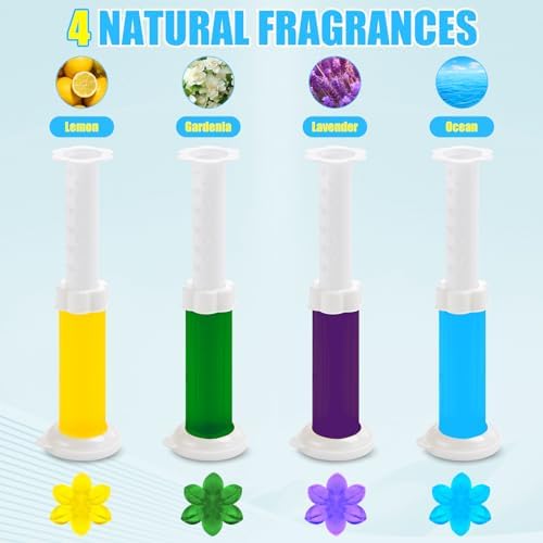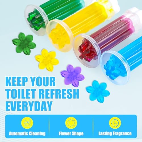 AstrivixDD 4 Pack Toilet Gel Stamp, 48 Stamps 4 Kinds Of Scent Toilet Bowl Cleaner Gel, Long-Lasting Flowers Shaped Bathroom Freshener, Keeps Toilet Fresh Fragrant and Clean