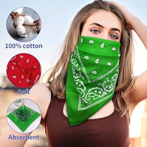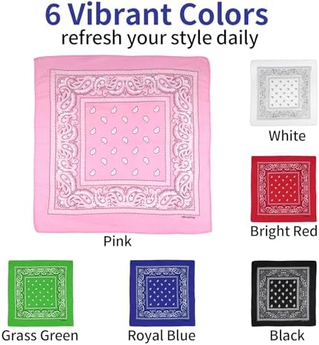 6 Pack Pure Cotton Bandana, Multi-Purpose Square Handkerchief, Face Mask headband for Men and Women