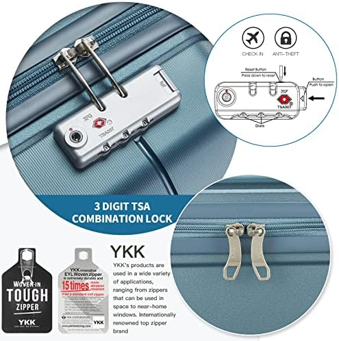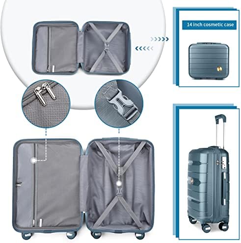 Somago 20" Carry On Luggage and 14" Mini Cosmetic Cases Travel Set Lightweight Polypropylene Suitcase with TSA Lock YKK Zipper Hardside Luggage with Spinner Wheels (2 Piece Set, Ice Blue)