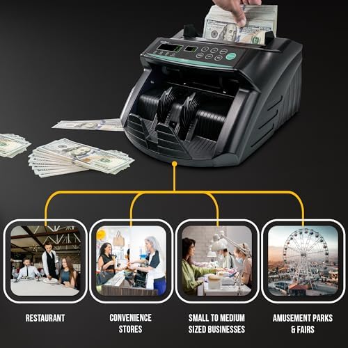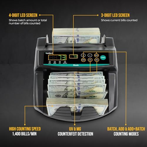 KOLIBRI Rook Money Counter with UV\/MG\/IR Counterfeit Detection \u2013 Count, Add & Batch Modes, 1,400 Notes per Minute Fast Bill Counter - US Dollar Cash Counter with Dual LED Display (1-Year US