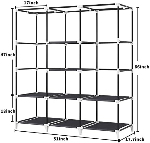 KEKIWE Portable Closet, 51 Inch Wardrobe Closet for Hanging Clothes with 2 Hanging Rods, 8 Storage Organizer Shelves for Bedroom, Durable and Easy to Assemble, Grey