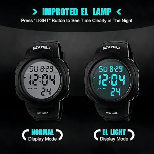 MJSCPHBJK Mens Digital Sports Watch, Waterproof LED Screen Large Face Military Watches for Men