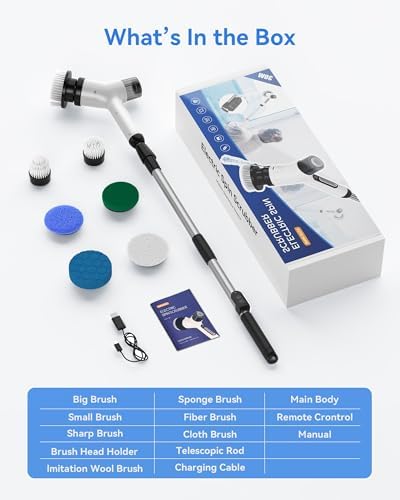 Premium Electric Spin Scrubber, IPX7 Waterproof with Foam Spray, Heavy-Duty Shower & Bathtub Brush for Bathroom, 300\/380 RPM High-Torque, Long Stainless Steel Handle, LCD Display & Remote by