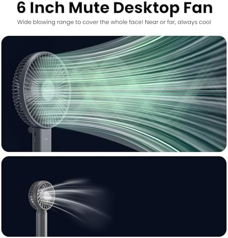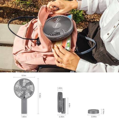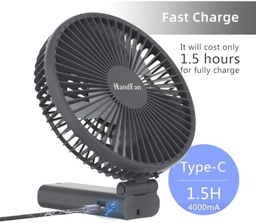 HandFan 6 Inch Handheld Fan with 4000mAh Battery 6 Speed Personal Fan, Strong Airflow, Cooling Desk Removable Base Design, 5-34H Working Time, 180° Foldable for Travel Outdoor Office Household(grey)