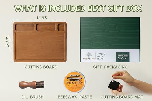 THETCHRY Cutting Board for Kitchen,Wood Thickened Non-Slip Cutting Board with Juice Groove & Handle, Bamboo Charcuterie Chopping Board for Meat, Perfect Size for Prep & Serving,16.93" x12.