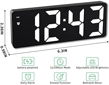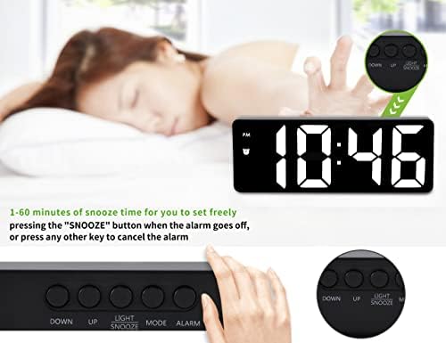 IOJBKI Digital Alarm Clock for Bedroom,Mirror Surface LED Electronic Clocks,Adjustable Brightness, Snooze Model,Voice Control,12\/24H Display,Alarm Clock for Kids,Office,Table,Nightstand-White