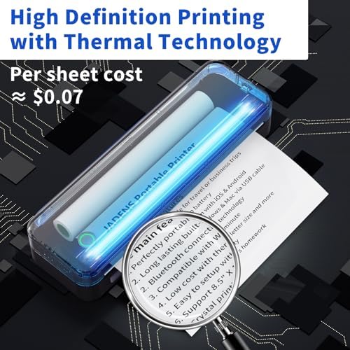 JADENS Bluetooth Thermal Printer, Support 8.5" X 11" US Letter, Portable Printers Wireless for Travel, Inkless Printer Compatible with iOS, Android, Mobile Printer for Home, Office, School