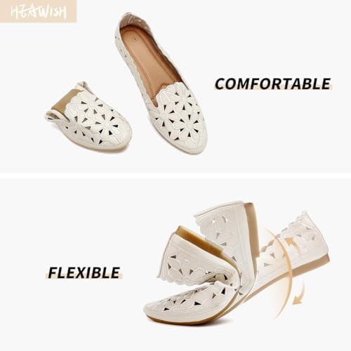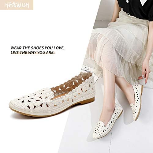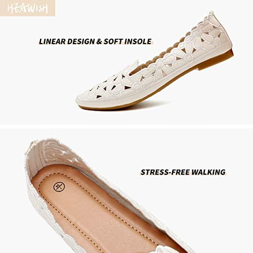 HEAWISH Women's Floral Ballet Flats for Women Black Beige Slip On Flowers PU Leather Round Toe Dress Shoes