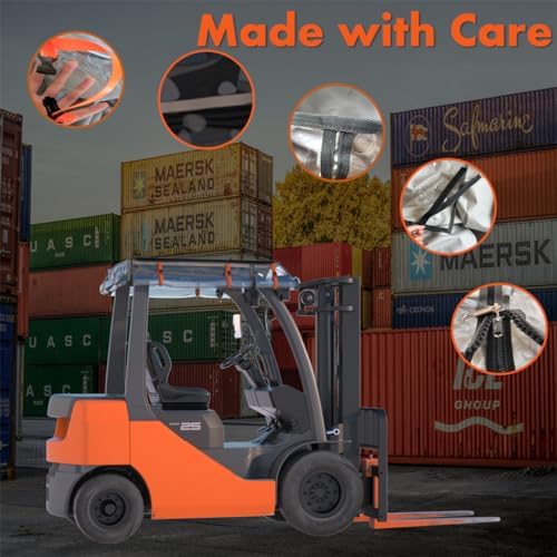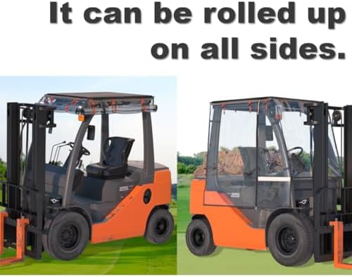 CHENGNAN Forklift Cover for Rain Up to 6000LB,,Can Be Rolled Up On All Sides,Ultra-Transparent EVA&Brown Canopy for Sun,Universal,Waterproof